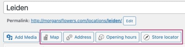 Permalinks settings allow you to enter custom permalink structures for your locations and location categories. Each location and location category will receive a custom URL. By default, these are /locations/%postname%/ and /locations-category/%category-slug%/.