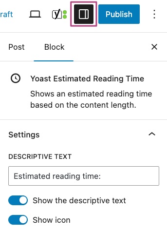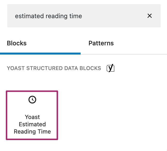 4. Search for the Yoast Estimated reading time block