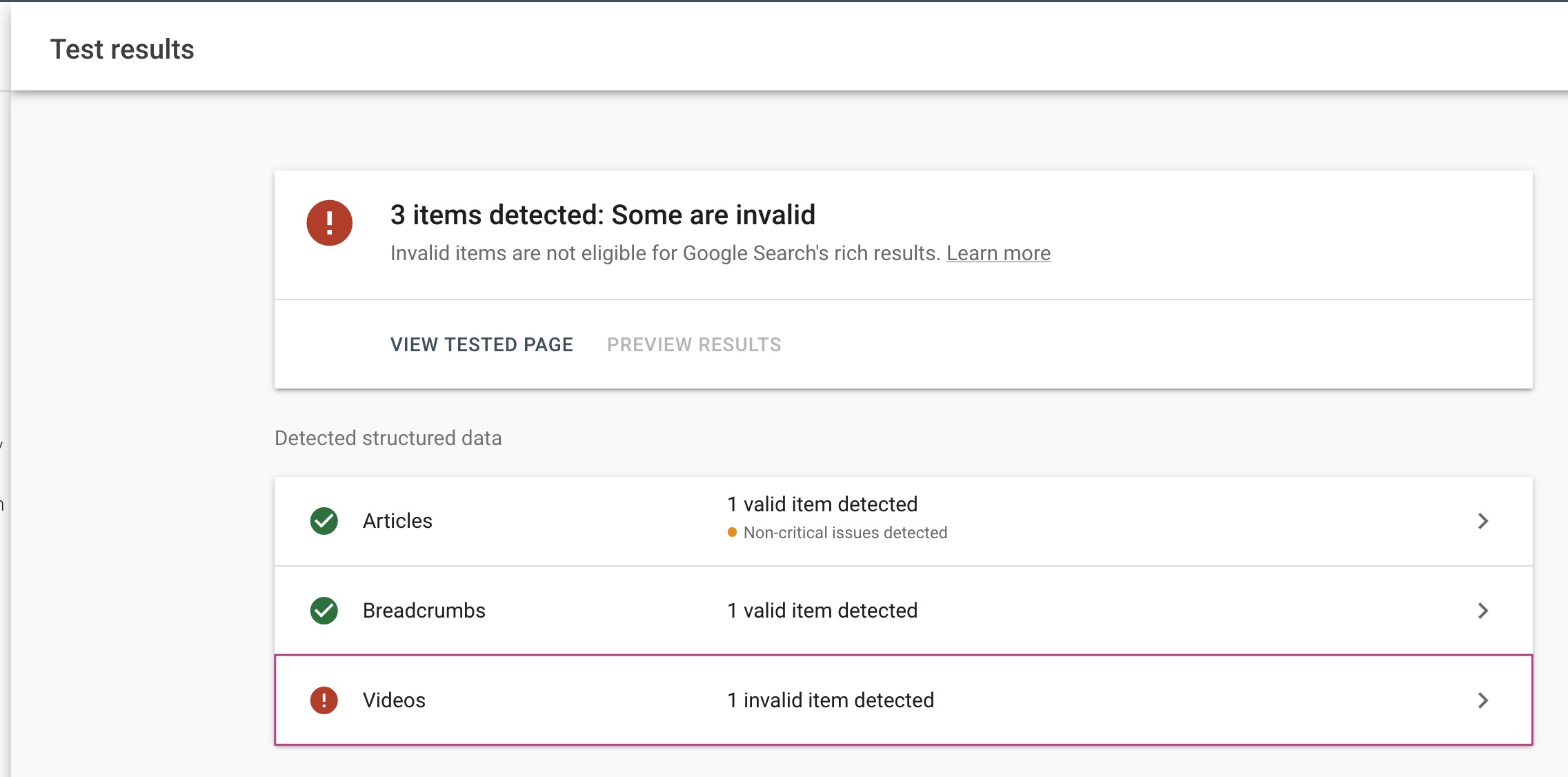 Before starting, you will need to have at least one URL that is listed in the Google Search Console has having a video error.