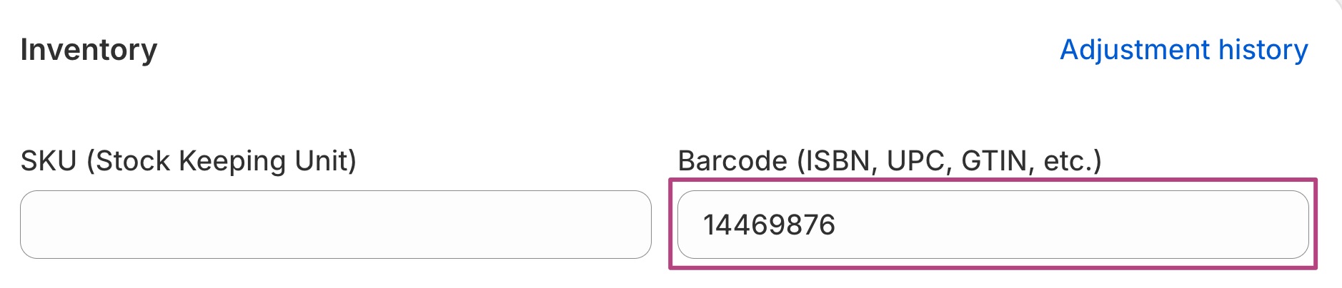 - Under Inventory, add the Barcode