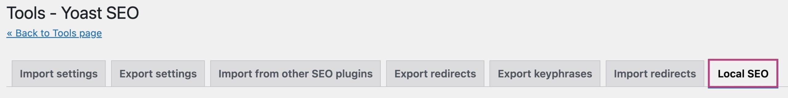 Screenshot of the Tools settings in Yoast SEO, highlighting the Import and Export link