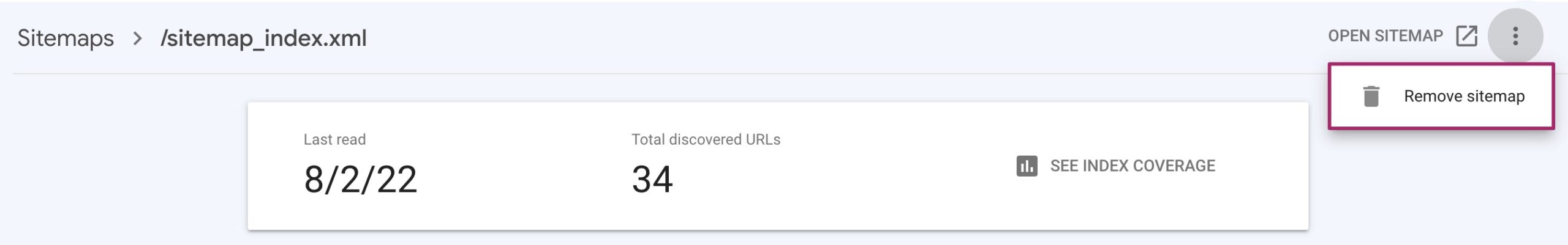 - Under Submitted sitemaps, click on the sitemap you want to remove
