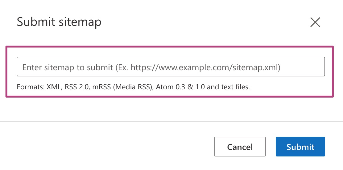 Please add your site to Bing Webmaster Tools first. To submit your site to Bing Webmaster Tools, please follow the steps below.