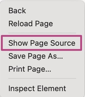 If you are using another browser and don’t know how to view the source code, please contact their support team.