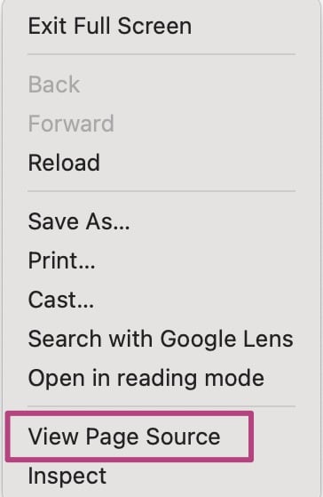 Once you are viewing the source code, sometimes you may need to search for a tag. You can do this by finding the search function of your Chrome or FireFox browser.
