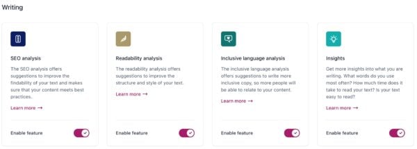 Under Writing, you can find the features related to improving your content.