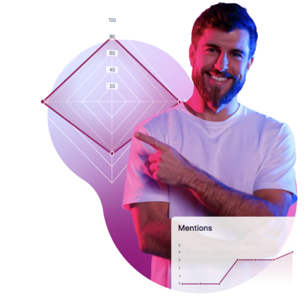 A score out of one hundred that blends mentions, ranking, citations, and sentiment. Shows the change since the last analysis.